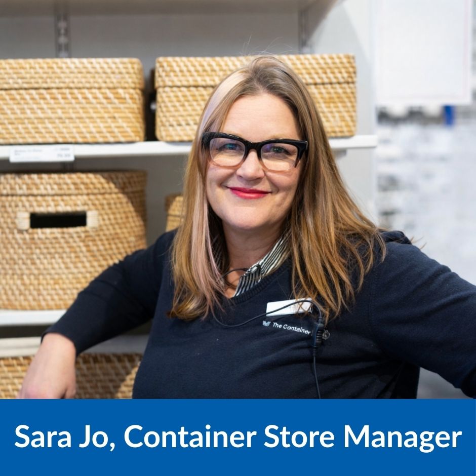 Store manager Sara Jo has been with The Container Store for 21 years and has led the Colorado Springs team since opening day. Most of the original team is still there, greeting customers by name, remembering their projects, and celebrating win, big or small.